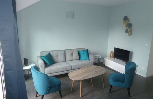 Located in the old relays Kergou, charming apartment completely renovated 65 m² with balcony, 2 bedrooms, 2 bathrooms and 2 toilets for 2 to 5 people. You will have access to the indoor heated swimming pool from May to September.