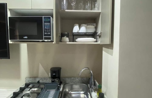 Enjoy this beautiful and comfortable luxury suite with two double beds, a kitchenette, and a work area, ideal for families and friends. Located north in a very quiet residential neighborhood surrounded by beautiful parks and close to the best shopping centers (BUENAVISTA, VIVA), Price Mart, restaurants, the hotel zone (Marriot, GHL), Via 40 (CARNIVAL EVENTS), clinics (Porto Azul, Iberoamerica), sports courts (racquetball, skating rink), Universidad del Norte, Atlántico, and schools. Easy access to the Malecón, Puerto Colombia beaches (pier 1888), Salgar, Puerto Mocho, etc.