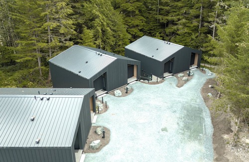 Nestled in the heart of Ucluelet and surrounded by a peaceful forest setting, our spacious 2 bedroom, 3 bathroom, 2-floor duplex cabin offers a quiet + peaceful stay while being conveniently located for exploration in the coastal town of Ucluelet. Calmwater Retreat offers 6 cabins in total.