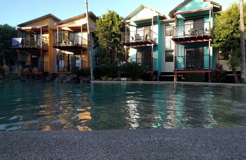 There’s a choice of 2 apartment styles with poolside or lakeside views. All feature air-conditioning, self-contained units, TV/DVD, telephone, laundry, 3 lagoon-style pools, and car parking next to your front door.