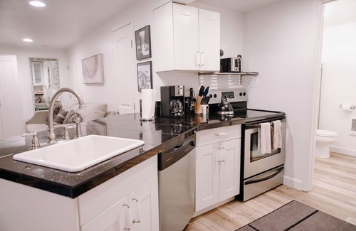 This is a spacious 600 sq. ft. fully furnished modern studio located under a charming Victorian home in prime NW Portland area. This studio located on a quiet dead-end street in the highly desirable alphabet district has a cozy living space with a fully stocked kitchen, dining area, private bathroom, and a cozy living room area with queen size bed and sleeper sofa. Free, convenient street parking available! Located in Nob Hill, Alphabet District, Walk score 97