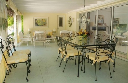 Comfortably sleeping 8 to 10, each of the 5 bedrooms provides a lovely water view and has its own private bath. A master king bedroom includes private patios on both the ocean and the lagoon side. Additional bedrooms include a king bed, a room with two twins which can be combined into a king, a queen, and a single. A sixth bedroom/sitting room with private bath has a sofabed that converts to a queen sleeper.