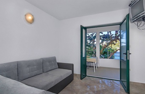Apartment can accommodate 5 guests. Beds are situated in 1 sleeping rooms, but also in the living room, within 36m2. Guests can use a private terrace to enjoy the warm summer evenings. The apartment offers the sea view. Food can be prepared using barbecue which is shared with other guests too. This accommodation unit welcomes pets at an additional charge.