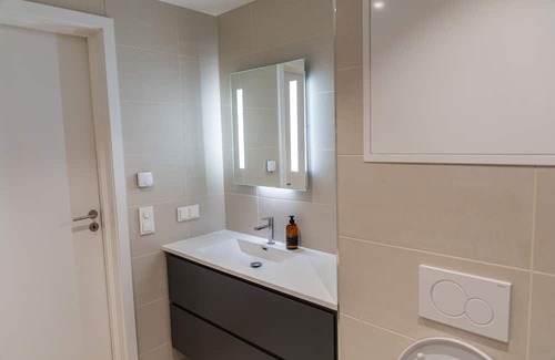 The kitchen is equipped with an oven, a stovetop, and a refrigerator, as well as an electric kettle, a microwave, and cookware. Bathroom amenities include a bidet, towels, and toilet paper. And there's a washing machine, so you can even pack a bit lighter. Other amenities at this 2-bedroom, 1-bathroom rental include bed sheets, air conditioning, and heating.
