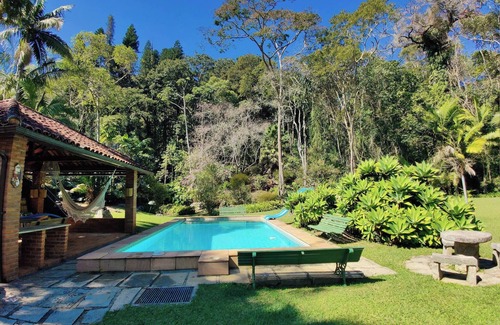 Place in a quiet, quiet place, and surrounded by lush nature. Located in Teresópolis-RJ, the newly renovated house has at the same time an air-rustic and the comfort of a place with a fireplace, beautiful mezzanine, barbecue, and swimming pool to spend time with family and friends. A place to rest, to meditate, to walk, to discover, to dream... who will not forget!