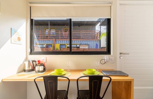 Our space has a green footprint: we use solar energy, low electricity consumption equipment, reforestation wood, we reuse shipping containers and we have a lot of green area!