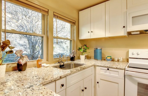 Take in unforgettable panoramic views of the Blue Ridge Mountains as you sip your morning coffee when you stay at this 2-bedroom, 1-bath vacation rental. Perfect for a serene couple's retreat or a fun-filled family holiday, this Mars Hill home has all the perks of a remote destination while still offering nearby fun! Spend your days exploring the nearby downtown areas of Asheville and Weaverville before heading back to watch the sunset as you lounge on the wraparound porch at this retreat.