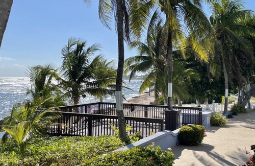 A very private end unit condo right on the Caribbean Sea (3 Bedroom 2.5 Baths). Spectacular views right from your Kitchen and Living Room. There are 2 large screened in porches and a mobile BBQ Grille to cookout and a private peninsula right on the ocean for morning coffee or evening drinks in the soft breezes. Paddle board and kayaks included that can be launched from your doorstep to snorkel, scuba dive and explore the corals reefs right off the shore. Laundry room also included inside the unit. Additionally you have access to a shared pool, tennis and pickle ball courts on the property.