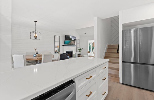 There are two bedrooms plus and a loft and three full bathrooms in this cottage. The master bedroom has a king size bed, a dresser for necessities, an HDTV and a en suite bath with a shower. The 2nd bedroom is brightly painted and has a brand new queen bed. The large hall bath with a shower/tub combo is just outside the door. Upstairs is a large loft with a full bed and a queen bed. The en suite bath has a shower and a small vanity with a mirror. The kids will love sharing this room! 542 Tarpon Pond is located 1 mile from Pelican Beach and North Beach. This is a wonderful cottage for your vacation with family and friends! You are welcome to bring along your (1) furry dog friend with required additional fee of $35/nt to apply.