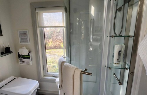 The suite looks out over 10 acres of forest. The Guest House is located 1000 feet from the road and is completely private.
