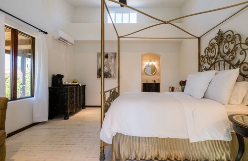 Poolside suite offers a private entrance & your own rose garden to enjoy with flower baskets & a double chaise to relax on. Watch the sunset with views of the mountains over the vineyard with a glass of local wine. Enjoy a private dinner by candle light in our Tasting Room. Finish off the evening with a Jacuzzi & cuddle up by our outdoor fireplace. Sleep in an inviting canopy bed with luxurious cotton & linens. The perfect romantic getaway!