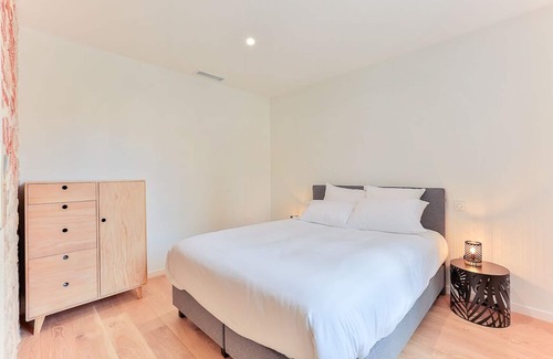 This elegant apartment, with an area of 42 m² on the ground floor, overlooks an interior courtyard. It includes a bedroom with a 160 cm queen-size bed, a living room with a 140 cm sofa bed and an equipped kitchen open to the living room. You can enjoy your meals on a dining table that can seat 4 people. The bathroom has a large Italian shower. This apartment is suitable for people with reduced mobility. The linen and the apartments are cleaned by professionals at the end of the stay.