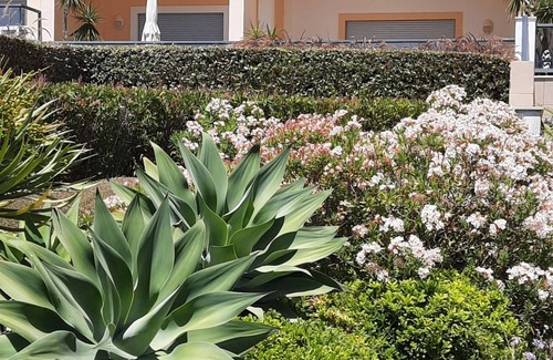 Very spacious and comfortable apartment on first floor of a residence in a unique setting facing the ocean with a large landscaped and tropical garden. It is a very peaceful and relaxing place surrounded by nature on the top of the hill and just 5 minutes away from Porto de Mos unspoiled sandy beach.