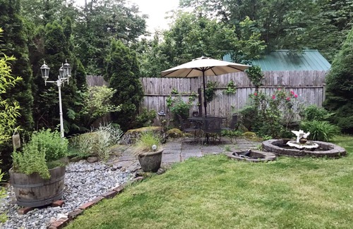 Our idyllic vacation rental offers an extremely memorable opportunity for a romantic getaway. Breathtaking mountain views coupled with an elegantly designed interior boasting intricately curated decor inspired by familiar fairy tales. The cottage garden exterior includes a private outdoor seating area, fountain, and freshly grown herbs. Our location is close to many outdoor activities - hiking, climbing, skiing/snowboarding, and foraging in addition to river rafting and swimming. Amenities include a well-stocked kitchenette, washer/dryer, clawfoot bathtub/shower, fire pit, (s'mores goodies included!) work station, wifi, and Roku. Please be aware of loud train noises in Index.
