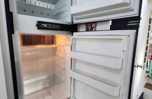 It's parked on our farm with private entrance and fence. It has a queen bed with foam mattress, a/c, 2 TVs, a sofa, a dedicated workspace, high-speed internet, a dining area and a full bathroom.