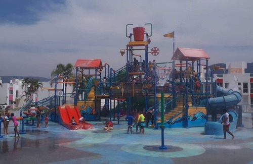 En la privada se cuenta con alberca y chapoteadero y un area llamada aqua zona la cual tiene toboganes para todos tamaños muy divertido para chicos y grandes.