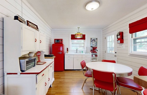 This quaint condo is an ideal getaway for those wishing to explore the heart of Appalachia. Outdoor activities abound just outside your front door, including hiking, biking, swimming, fishing, rafting, tubing, ziplining, and skiing. You'll also enjoy close proximity to a plethora of art galleries, shops, museums, and theaters in downtown Asheville. After your explorations, return home to relax in your 1920s retreat, stylishly detailed with retro-chic decor and vintage pieces. The rental is equipped with a kitchenette, outfitted with unique appliances reminiscent of a 1950s diner.