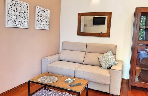 Riad Mezquita de Córdoba 4, has a roomy room with queen bed boasting the house's courtyard views, it has a sofa-bed to comfortably sleep up to two more guests. In addition, it has an attic with a single bed and lovely rooftop terrace where you can enjoy incredible views of the Roman Bridge and the Guadalquivir. Fully equipped room to enjoy a pleasant stay. Bedroom area with sofa-bed, 35 '' TV and Dolce Gusto coffee maker. A bathroom with a hydromassage shower cabin and hairdryer included.