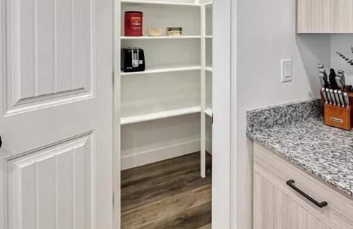 Our kitchen has everything you will need. The primary bedroom has a king bed and a flat-screen TV with a walk-in closet and a full bathroom. The 2nd bedroom has a queen bed with a walk-in closet. The 3rd bedroom has a bunk bed with a pull-out trundle. The top bunk is a twin, the bottom bunk is a full, and the trundle bed is a twin. The sectional couch downstairs has a pull-out queen bed. We also have a queen air mattress and a pack-n-play available upon request. The 3 bedrooms are all upstairs so consider that before booking if you aren’t able to walk upstairs. However, there is a pull-out couch on the main floor if needed for those guests who aren’t able to go upstairs.