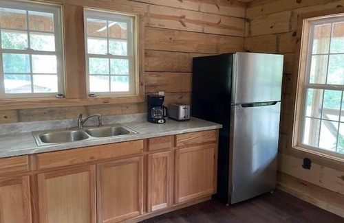 Please note, the shower and bathroom are located outside the cabin, just a few steps down the porch from the cabin bedroom and bunk room.