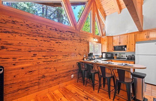 Each of these two riverfront cabins has its own covered porch, but they're also connected by a deck where you can watch for birds, deer, even the occasional bear or mountain lion. Inside each cabin, you'll be greeted by a single-story living space with a wood-burning fireplace, where you can toast your toes and stream movies (using your own accounts). Prepare meals using the gas grill and each cabin's kitchenette, complete with a fridge, a stovetop, a microwave, and a toaster oven, but no traditional oven or dishwasher. There's no AC or washer/dryer, but you will have the comforts of baseboard heat and complimentary WiFi.
