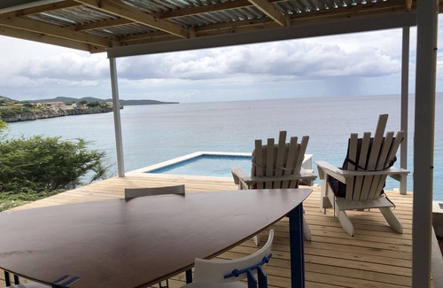 Sol Patch Jeremi is a brand new, spacious duplex in a gated community at the west end of Curacao. The house faces west on a cliff overlooking the Caribbean Sea for fabulous sunsets. Watch frigate birds following local fishermen and keep an eye out for leaping tuna, dolphins and sometimes whales. You'll have your own private plunge pool for sunning or stargazing, wide wooden stairs down into the water for snorkeling and you can walk to our local beach, Playa Jeremi, in minutes. The house has two mirror image apartments, each completely private. Because this is a new community there may be construction happening, we apologize in advance for any inconvenience this may cause.