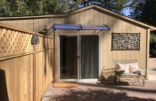 This quiet retreat space is healing and restorative. Nestled in the redwoods with a commanding view over the land and the view of the ocean with its endless possibilities is a perfect place to relax.