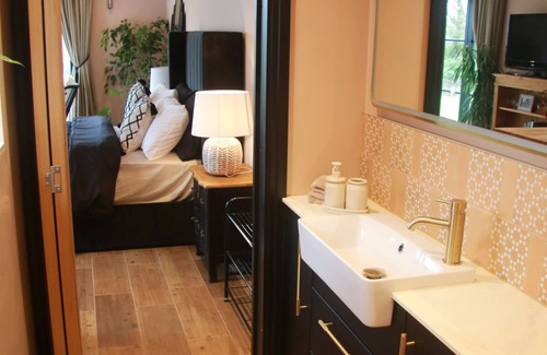 Set in a rural idyll this is an inspirational space that will warm, rest, relax and nourish you as you retreat from everyday life. Unwind in quiet untainted air and stillness. Recharge mind and body on undulating country walks with uplifting views while keeping your feet dry, and, back at base, enjoy the deep deep peace of the beautiful vista from your own terrace. Off street parking, picturesque rambling, village pubs, wedding venues, historic properties, M25, A21. Perfect Location. The space: You will have exclusive use of The Retreat Space - king size bed, underfloor heating, TV. Easy chairs for reading, taking breakfast and gazing at the sunset. Taking in the amazing view will help soothe your troubles away. You will have your own kitchenette complete with hot water tap, fridge (and little freezer), 6 in 1 counter top oven, enough crockery and utensils to enjoy a few days of simple living. A shower room that will make you want to pamper yourself and feel a million dollars in a perfectly harmonious environment. You'll be surrounded by plants to further boost your mood and help you relax. There is space under the bed to store your bags, hanging space and a generous mirror in case you need to get ready for a big occasion such as a Kent wedding. There are many circular walk right from the doorstep. You can go off-road and walk to adjoining villages through fields and woods with well-signposted public footpaths. Or, if you'd prefer, stick to tarmac for a power walk or 5K run on the 'Weald Loop'. A 5K road based route, where you'll be in the heart of untainted English countryside, rising in gentle gradients to reveal enchanting views that lift the spirit. A regeneration for mind and body.