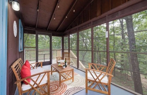 Escape the city and recharge at this tastefully renovated cabin with thoughtful details throughout, including the enjoyable screened in porch, custom locally made light fixtures, and a skylight for added natural light.