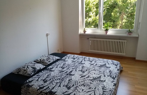 The room is located 5 minutes away from the train station and 2 minutes walk to the lake. It has a king size bed, a private bathroom is next to the room, a fully equipped kitchen which leads to a 20sqm terrace.