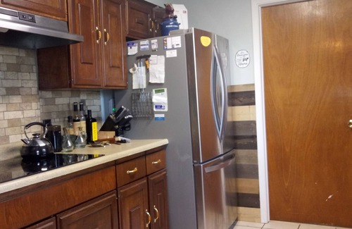 We rent out three rooms in our home. Two rooms share a bathroom. One room has an ensuite. All rooms have ceiling fans, desk with chair, mini-refrigerators and TV.