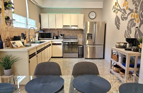 Step into our spacious, fully-equipped kitchen, a haven for those who love to cook and a delight for those who savor the art of cuisine. Mornings are bliss with our dedicated coffee bar, featuring a selection of brews to kickstart your day. This kitchen combines functionality with modern aesthetics, making it not just a place to prepare meals, but a space to create memories. From the latest appliances to the ambient lighting, every detail caters to your culinary adventure in San Juan.