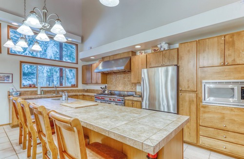 During the winter, this home is a winter wonderland, and during the summer, an outdoor enthusiasts dream! With two suites, two bedrooms, and an open great room, this home is perfect for entertaining any group. The full kitchen has a large island, two sinks, and all the tools you'll need to dine in with ease. In the living room, the large picture windows allow you to bring the outdoors in watching the sun peeking through the trees. Grab a morning cup of coffee and watch the snowfall or elk graze! After a day's adventure, grab some hot cocoa and gather together for a movie or board game as you talk about the day's adventure.