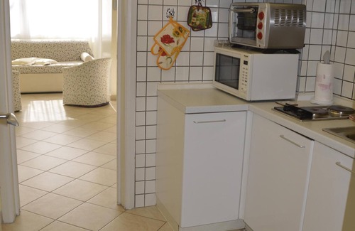 Apt 331 sports modern furniture, well equipped kitchen, a stylish wooden table, a comfortable double bed and a brand new sofa bed (it can be used as double bed ,single bed or 2 single beds), 32 inch LCD TV set and DivX player and multimedia Hard disk ,Xbox One (+ games). It can easily accommodate up to four people. An additional single bed (cot/crib) for a child up tp 3 years old might can be added on request. This unit doesn't sport a standard balcony .but instead a French Balcony.