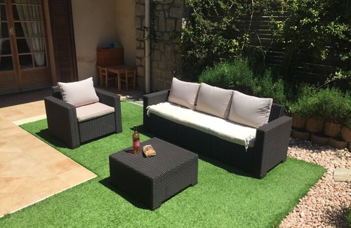 After a day at the sea, you will love to relax in the patio of the flat, which has a coal barbecue, an outdoors living room, and recliners. On the other hand, the villa’s garden, peaceful and well-kept is a total of 50 m².