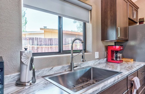 Enjoy a stylish experience at this new centrally-located gem in West Sedona. 420 square ft guesthouse nestled on our treed lot in a quiet neighborhood. Enjoy a private bedroom with a queen bed and a television. Features a stylish kitchenette with coffee pot, coffee, hotplates, microwave, toaster oven, toaster, and a crockpot. The home is a short distance to many hiking trails such as: Thunder Mountain, Chimney, Devil's Bridge, Little Sugarloaf etc. There are several dining options and grocery stores just a few minutes away.