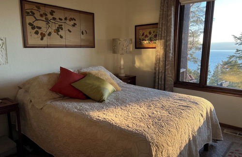 Serenity is a peaceful retreat overlooking the majestic Flathead Lake. Simple and intimate it features beautiful lake views. It offers a place where time slows down, the birds are heard singing, and sunsets last late into the evening. Situated in Woods Bay, minutes from restaurants and 5 miles from the quaint village of Bigfork.