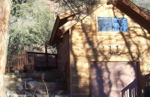 Located just four miles from Downtown Durango, in the stunning Animas Valley, our quiet woodsy retreat offers you privacy, comfort and easy access to the area's great activities. Satellite TV, free WiFi, fresh coffee and herbal teas tempt you to settle in for a cozy stay, but there's so much to do! We're located on a county road with world class golfing (Dalton Ranch) and rejuvenating hot springs (Durango Hot Springs Resort) just five minutes from your door. Durango's best bakery (Bread) is about a mile away, and is open for early risers! Best of all, it's completely quiet here - no 6 am Train whistles, no sirens, no in-town traffic. Our home is tucked into the forest against the base of red rock cliffs; out your back door you may see deer, elk, wild turkeys and an occasional silent coyote wander by.