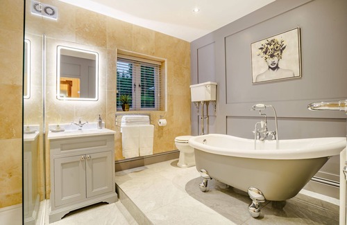 Nestled in the sought-after village of Mottram St Andrew and surrounded by serene countryside, Skyfall provides the perfect setting for a sophisticated getaway. Get together for a memorable holiday in this stunning abode, complete with five luxurious bedrooms, a fully-equipped gym and a modern living space, as well as an outdoor lounge on the balcony which is a great spot for admiring the sunsets. Meanwhile, the pretty village of Prestbury, with its abundant shops and restaurants, is just a short walk away, while the historic city of Chester and Tatton Park are great for days out.