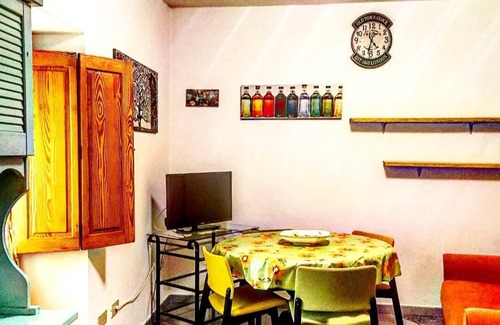 Small, colorful, functional cottage in the center of Sorgono. Located in front of the market square, so with ample and free parking possibilities. Recently renovated, the house is on two floors connected by a spiral staircase. On the ground floor there are the living room-kitchen and the bathroom with shower; upstairs two bedrooms: one double and one single. The house is very welcoming and equipped with all the appliances (hot-cold air conditioners, large fridge-freezer, microwave oven, kitchen with gas oven, washer-dryer, hairdryer and iron). It is a great starting point for a couple with a child or three friends.