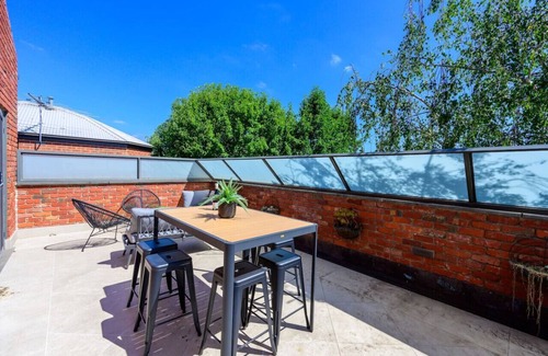 Your family will be close to everything when you stay at this centrally located converted warehouse in Northcote. The home sits in a secluded location, tucked away from the street, affording a quiet, safe oasis to retreat to at the end of a busy day. Relax in the amplitude of the courtyard or on the first-floor stylish terrace. Make your own Pizza in our wood-fire oven in the Courtyard. Close to proximity to Westgarth/Northcote, Thornbury High Street, restaurants, pubs, bars, cinemas/shops.