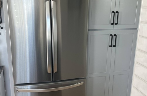 Prep and cook your favorite recipes using the newest in stainless appliances, which include a chef-preferred gas cooktop and oven, large double-door refrigerator with spacious bottom freezer drawer, and a microwave oven. Handy smaller appliances at your fingertips include a blender, airfryer, toaster and toaster oven, hand mixer, coffee grinder, Mr. Coffee drip coffeemaker, as well as a Nespresso Vertuo expresso machine. Cleanup is a snap using the large capacity dishwasher and deep farmhouse sink. Sip your morning coffee, or perhaps a glass of wine during dinner prep, at the counter seating or at the cozy dine-in table for two by the window.