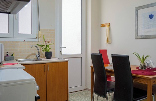 "Best City Location" is aspacious, cosy apartment 54 m with a furnished veranda to enjoy open air and a balcony. There are 2 bedrooms, the main bedroom with a double bed with veranda access and the small one with a single bed . One living room with 1 sofa bed ,1 sofa, 2 armchairs. One full equiped kitchen with cooking machine, oven ,coffe machine, boiler, microwave, toaster and one bathroom with washing machine. The location is exceptional , 5 minutes walking to the city centre, 4 minutes walking to the port, where the coffee shops, the bars and the restautrants are and 3 minutes walking to the beach. The neighborhood is quiet enough. It is ideal for families and for travellers who want to be at the centre of the island near to all facilities.