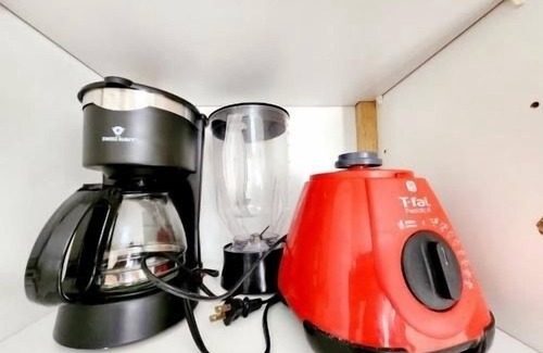 The kitchen is equipped with a stovetop, as well as a coffee maker, a microwave, and cookware. Bathroom amenities include a bidet, towels, and toilet paper. And because there's a washer and dryer, you can go a bit lighter on your packing.
