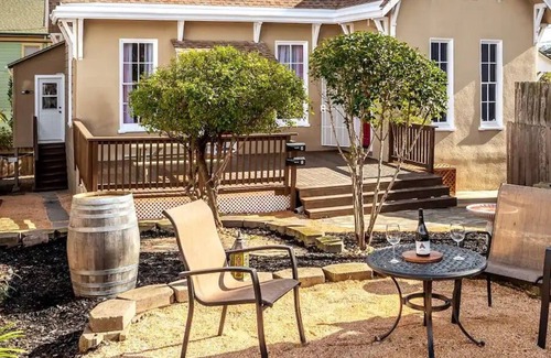 Sit outside on the front deck at the picnic table and enjoy the incredible California climate. Or use the outdoor front patio furniture in the yard to sip a glass of wine while admiring the stained glass of the stunning St. Vincent’s Church across the street.