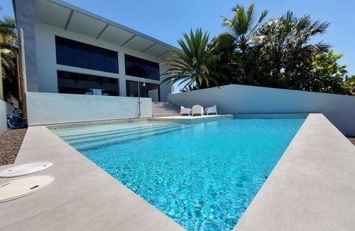 Stunning new villa overlooking the nature reserve of Jan Thiel with a nice breeze. Modern design with a lot of space and outside terraces. Relax in one of the two pools with a view. Cook dinner on a large kitchen island or just lay back and watch TV (65 inch. TV) and listen to music. There are several places with beds for sunbathing and chilling under the palm trees. All rooms have supreme bedding and closets. End of the day enjoy a bath with our Rituals amenities. Maybe time to light the BBQ!