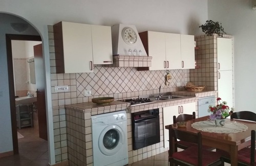 New house built in 2009 with an amazing view of the countryside, situated in a strategic position to spend your holidays in a cosy and relaxed atmosphere. It is ideal for those who like walking, enjoying the fresh peaceful summer evenings in the countryside. The house provides accommodation for up to 5 people. It consists of two double bedrooms, a fully equipped kitchen with connected living room (with sofa bed), bathroom, privat swimming pool and a large veranda. The location is just at 8 Km from the beautiful seaside of 'Lu Bagnu. Car is needed.