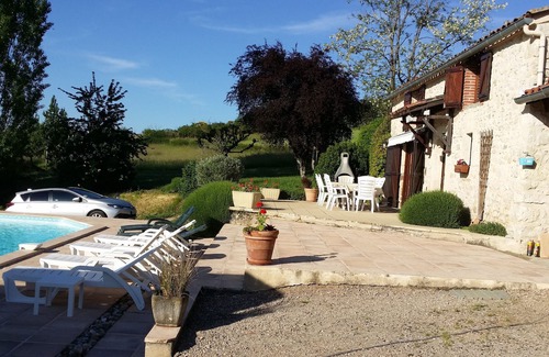 Renovated stone farmhouse in 2¼ acres of gardens. Ideally situated in scenic unspoiled countryside with lovely views yet within walking distance of historic Cordes, a fascinating 13th century bastide town with many restaurants, cafe bars and shops. Sole use of private pool (10x5m). Extensive paved patio terrace with sun awning. Large lounge with beamed ceilings, exposed stonework and double French windows to terrace. This superb stone farmhouse is spacious and well equipped, has fully fitted dining kitchen with beamed ceiling. Laundry/utility room with shower, separate WC and wash basin. 3 double bedrooms, large bathroom, Part air-con. Wood burning stove and central heating for the cooler months. No pets. Albi 20 mins drive and Toulouse and Rodez airports 1 hour. Ideal for golf, fishing, canoeing, cycling, riding, walking etc. Many vineyards in local region. Wifi, TV, DVD Player, CD Player