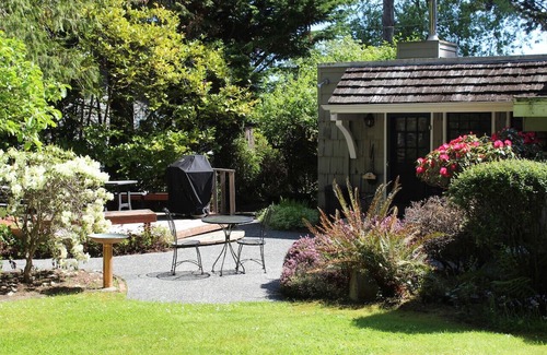 Enter this restful property down a winding path through massive evergreens and lush bushes and colorful flowers everywhere. This quaint cottage overlooks Sequim Bay--the bay of calm waters--and its ever-changing views never disappoint. Sip your morning coffee from the deck or expansive windows while watching the sun rise with the crabbing boats heading out for the day, and in the evening enjoy a glass of wine as the sailboats breeze by on the sunset-colored waters. Or take a tranquil break in the charming front patio, complete with tables, chairs, and a large picnic table. These beautiful grounds host numerous deer, and the skies are always busy with songbirds, seagulls, eagles and herons.