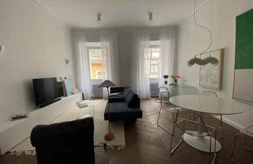 Freshly renovated, premium, artistic, and bright apartment in the historic centre of Ljubljana, with amazing views of old town and Ljubljana Castle. A place where history meets contemporary. Completely renovated, in a 400-year-old building with high ceilings and herringbone hardwood floors. Custom-designed furniture and original artwork from Slovenian artists will let you experience Ljubljana in a very special way. Free private parking 12 minutes walk from the apartment. Digital nomads welcome!